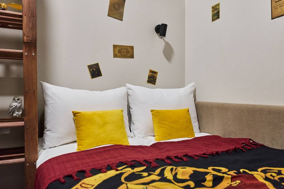 ✨ Интерьер наполнен волшебными деталями: палочка, золотой снитч, распределяющая шляпа и другие артефакты из мира Гарри Поттера.