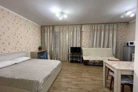 Лаконичная студия "Осень" вмещает до 4-х человек при совместном размещении 2+2 на двуспальной кровати и раскладывающемся диване.