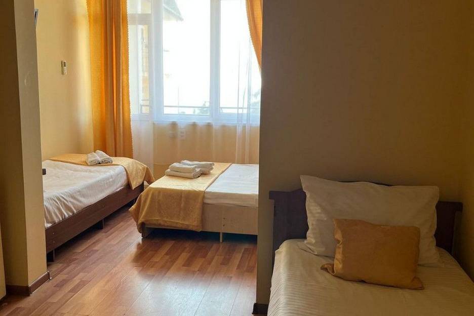 В номере: 1 двуспальная кровать и 2 односпальные кровати.