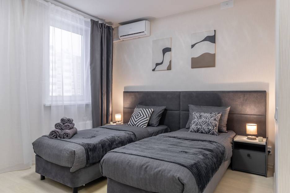 Главная особенность — двуспальная кровать‑трансформер, которую можно разделить на 2 односпальных (удобно для коллег/друзей).