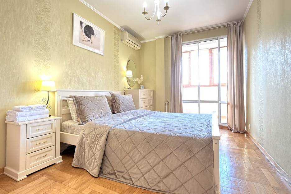 Отдельная спальня оформлена в спокойных тонах и располагает к полноценному отдыху.