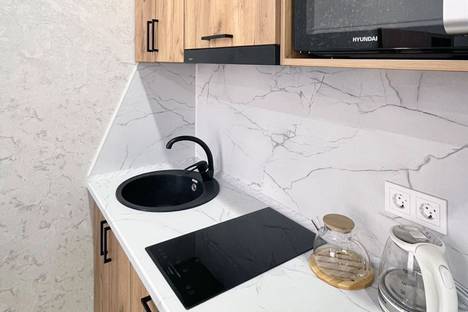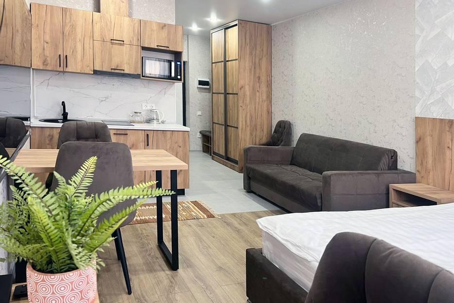 В апартаментах есть полностью оборудованный кухонный гарнитур и полный комплект бытовой техники и посуды, возможность готовить еду самостоятельно. А также обеденный стол со стульями, чтобы можно было собраться за общим столом.