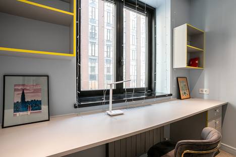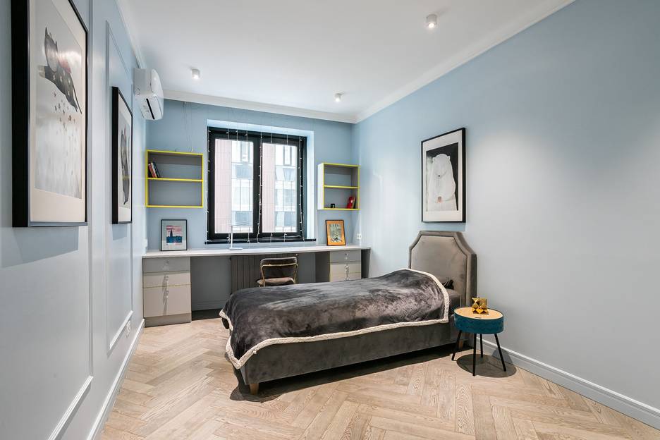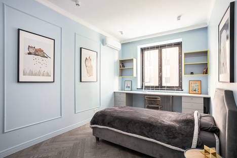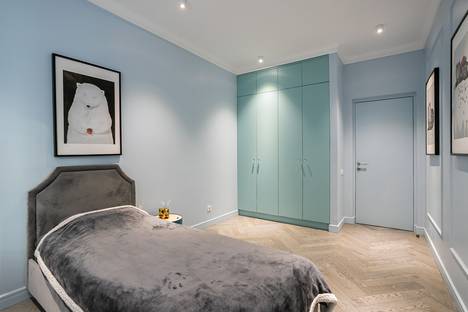 Мы создали пространство для тех, кто ценит красоту в деталях и удобство локации. Вас встретят десятки оригинальных портретов в рамах — наша квартира похожа на маленькую, но очень уютную галерею. Серо-голубые стены и бархатистые серо-голубые диваны создают атмосферу спокойной роскоши.