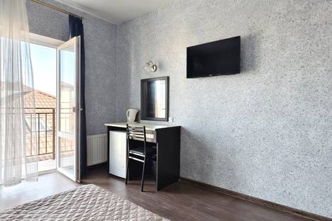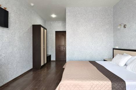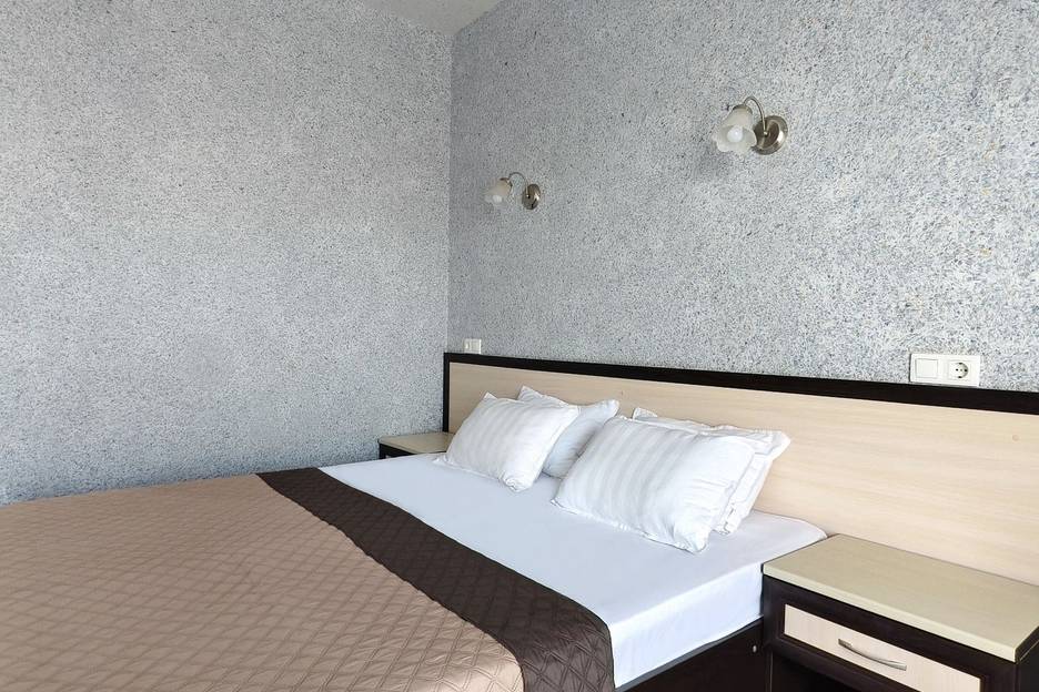 Однокомнатный номер. В номере находятся двуспальная кровать , прикроватные тумбочки, шкаф, вешалка для одежды, бра, кондиционер, телевизор, журнальный столик, туалетный столик, зеркало, мини-холодильник.