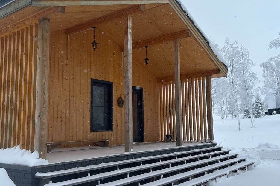 - в доме так же есть все необходимое, чтобы расположились 4 человека (есть двуспальная кровать и раскладной диван).