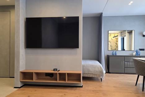 ✔️ зона гостиной с большим телевизором и диваном, который раскладывается, превращаясь в дополнительное спальное место, что позволяет комфортно разместить до 4 гостей (идеально подойдет для семьи )