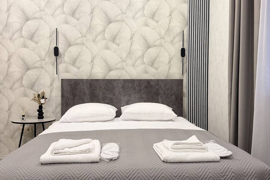 У нас есть вся необходимая техника и мебель, уютная кровать Аскона и белоснежное постельное белье страйп Сатин , предоставляются ванные принадлежности!