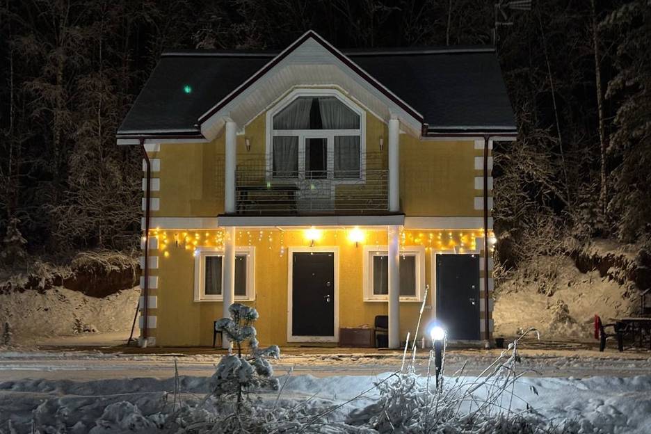 Вечером озеро красиво подсвечивается, создавая особую романтичную атмосферу. В 5 минутах — баня и лыжная база.