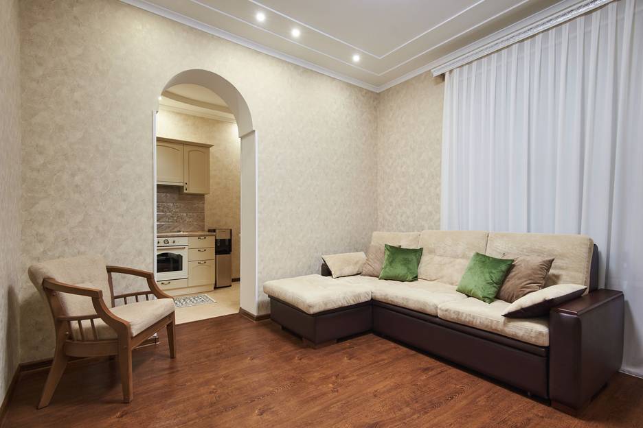 Квартира готова разместить до 6 гостей, на комфортных двухспальных диванах и кровати.