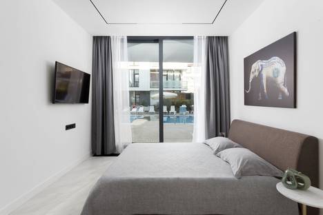 Апартамент № 2 расположен на 1 этаже комплекса с собственным выходом к бассейну, панорамные окна и ландшафтный дизайн станут приятным дополнением Вашего отдыха.