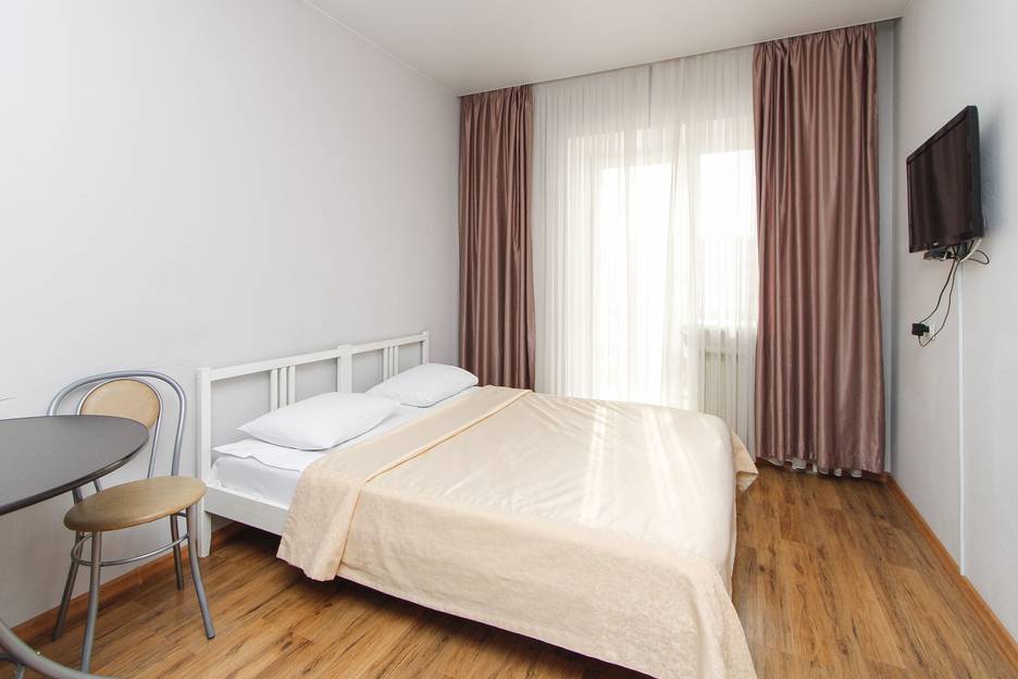 Апартаменты площадью 20 м², с большой двуспальной кроватью, укомплектованной кухней с бытовой техникой и посудой.