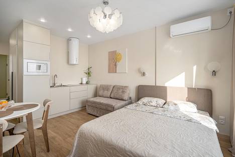 Предлагаем уютную и светлую квартиру-студию в посуточную аренду. Это просторное пространство с современным ремонтом идеально подходит для комфортного проживания.