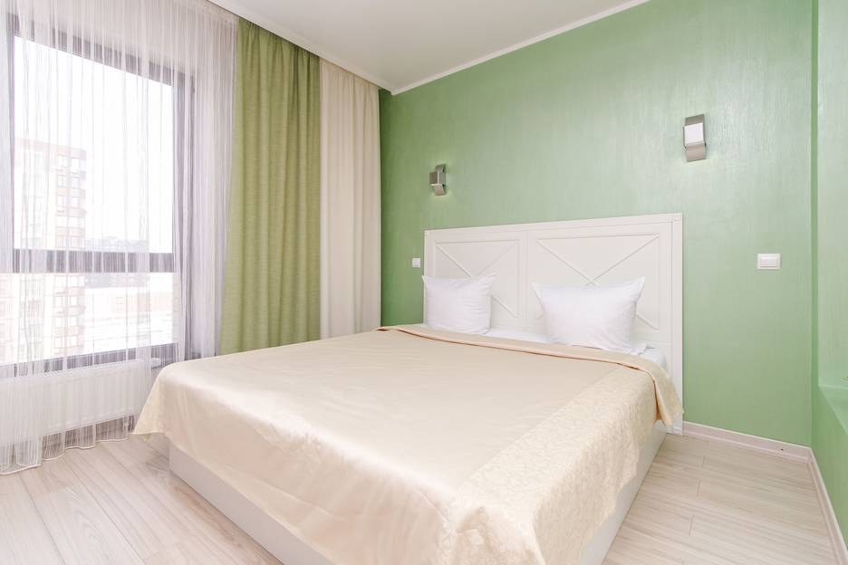 Апартаменты №126 площадью 40 м², с большой двуспальной кроватью, укомплектованной кухней с бытовой техникой и посудой.