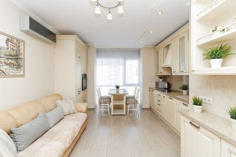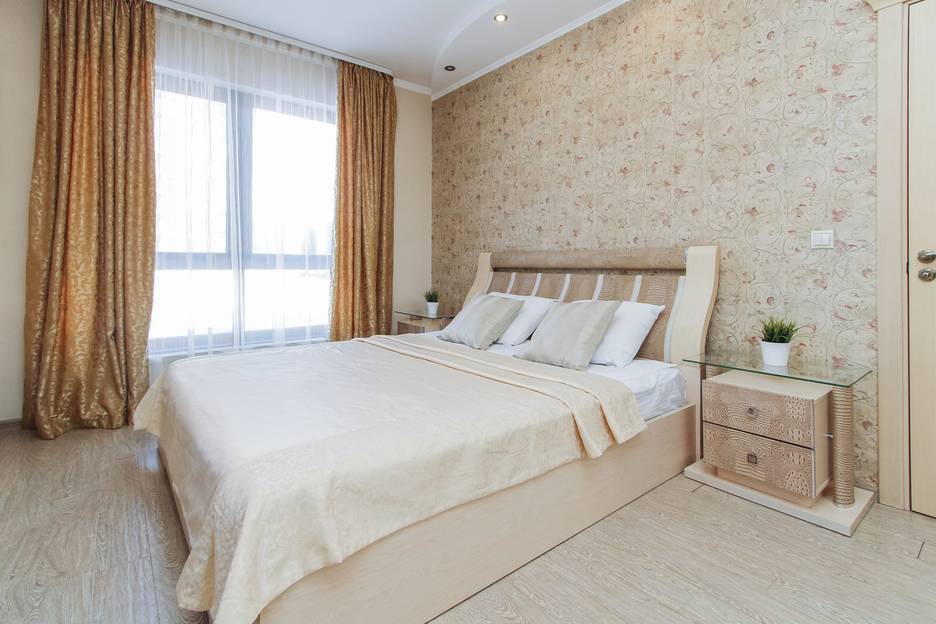 Апартаменты № 138 площадью 40 м², с большой двуспальной кроватью, укомплектованной кухней с бытовой техникой и посудой.
