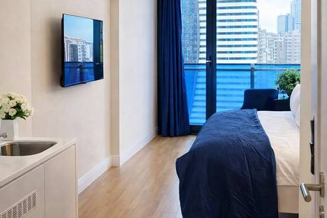 Наслаждайтесь потрясающими панорамными видами на море, город, танцующий фонтан и горы с балкона, а также непревзойденным расположением в окружении всей необходимой инфраструктуры и в нескольких минутах ходьбы от красивого бульвара. Кроме того, здесь предлагаются современные удобства, такие как высокоскоростной интернет, кондиционер и телевизор с развлекательными функциями, а также круглосуточная стойка регистрации для вашего удобства.