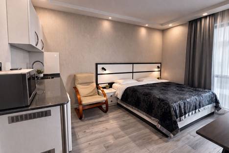 В квартире есть всё для комфортного проживания: удобная кровать, мини-кухня, кондиционер, ТВ и Wi-Fi.