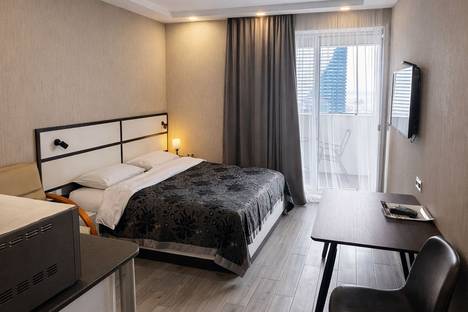Стильная студия с захватывающим панорамным видом на море и поющие фонтаны - идеальное место для Вашего отдыха. Просторный балкон станет вашей любимой точкой: здесь особенно красиво на закате
