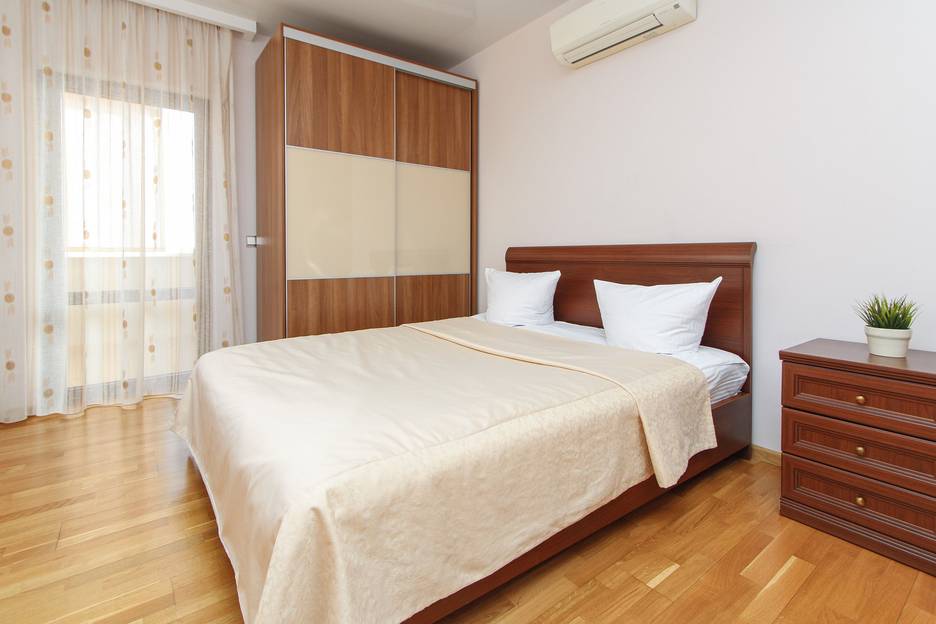 Апартаменты № 132 площадью 60 м², с большой двуспальной кроватью, укомплектованной кухней с бытовой техникой и посудой.