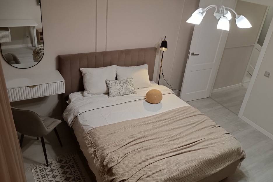 Интерьер квартиры выполнен в светлых тонах, что создает атмосферу спокойствия и умиротворения. Каждая деталь продумана до мелочей для вашего комфорта.
