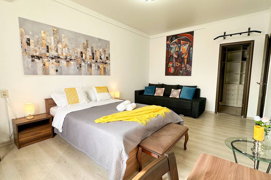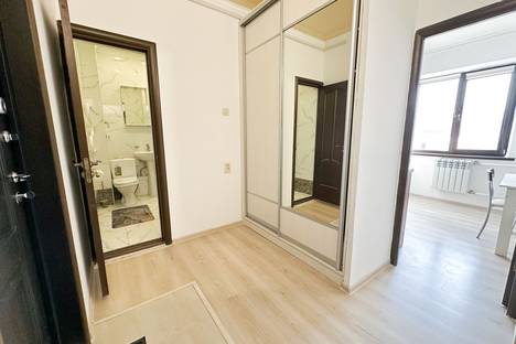 1 комнатная квартира с двуспальной кроватью с ортопедическим матрасом и двухспальный диван. Отдельная полностью оборудованная 8м2 кухня. Отдельный санузел с душ кабиной, унитазом, умывальником и стиральной машинкой. Общая площадь 40м2. Есть отдельная комната -гардеробная, где удобно хранить багаж и развесить одежду. Жилье находится возле парка Ганди, где можно позаниматься активными видами спорта или просто погулять и отдохнуть в тени деревьев. В шаговой доступности улица Розыбакиева где находятся галерея ресторанов и кафе быстрого питания, Мега Молл, огромный продовольственный рынок Жулдыз. Из окна квартиры открывается великолепный вид на горы Заилийского Алатау.