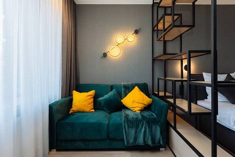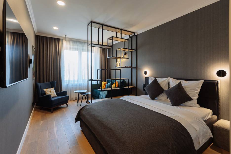 •Двуспальная кровать (160х200) и удобный раскладной диван (160х200) — комфортное размещение до 4 гостей.