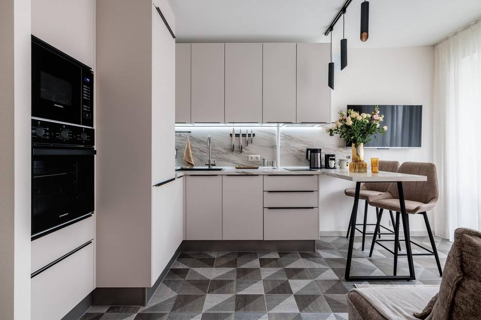 Кухня-гостиная оснащена всей необходимой техникой и посудой — готовьте любимые блюда!