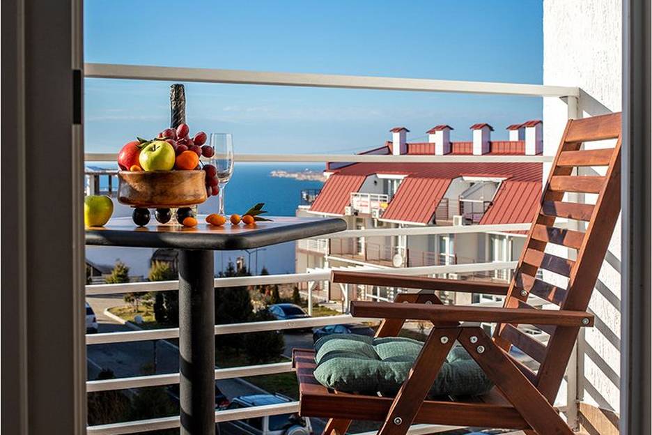 Апартамент LOFT с потрясающим видом на море и современным интерьерным решением не оставят равнодушными ни любителей активного отдыха, ни путешественников-гедонистов. Апартамент для 3 гостей - 2 взрослых и одного ребенка. В нем есть большая двуспальная кровать (спальное место 180х200) и кресло-кровать (спальное место 90х200), кухня, ванная комната, лоджия с мебелью для принятия солнечных ванн и вечерних посиделок. Кухня оборудована так, чтобы было удобно готовить, а не только разогревать еду. Есть полноценные обеденная и рабочая зоны (специально для трудоголиков). А так же: WI-FI, SМАRТ-ТV (заходите в свой аккаунт и досматривайте кино с того места, где остановились еще дома), кондиционер (охлаждение/обогрев/увлажнение) , холодильник, бойлер, вместительный шкаф, утюг, гладильная доска, фен. Ресторан «Мыс Фиолент» и смотровая площадка "Мыс Фиолент" в шаговой доступности. Есть отдельный выход к морю, пляжам, гроту Дианы. В шаговой доступности 3 смотровые площадки: мыс Фиолент, Тигриный мыс, грот Дианы, а также Свято-Георгиевский монастырь, Ротонда-беседка А.С.Пушкина, Пляжи: Каравелла, Яшмовый, Царский. О КОМПЛЕКСЕ Fiоlеnt-villаgе ЖК «Фиолент Villаgе» находится под круглосуточной охраной: камеры видеонаблюдения расположены по всему периметру территории, на подъездах и во дворах. Для удобства отдыхающих обустроены парковочные зоны. Благоустроенная зеленая территория комплекса зонирована на: мангальную зону с беседками и кухней, детскую и спортивно-оздоровительную площадки, уютные зоны отдыха с качелями с видом на море