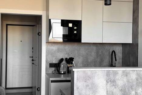 Сделан качественный, продуманный ремонт, по дизайн-проекту. Студия находится на 4 этаже, пятиэтажного дома, есть лифт.