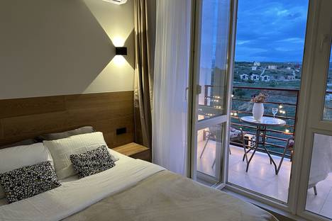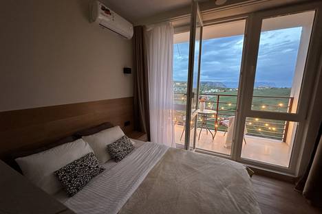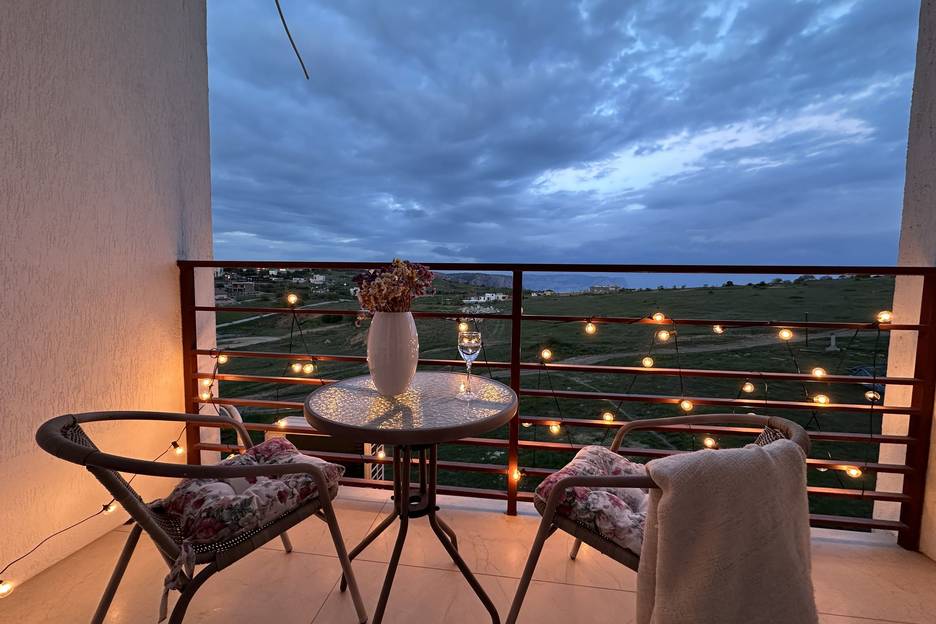 В апартаментах есть большая открытая лоджия с видом на мыс Айя.
