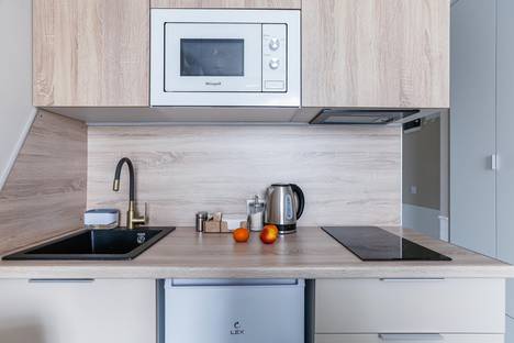 * Микроволновая печь, плита, холодильник, чайник, набор посуд