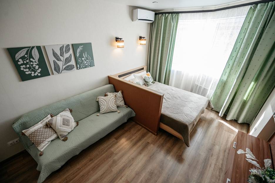 До 4 гостей, диванчик раскладывается.