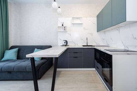 Сдается евродвушка в новом доме комфорт класса. Изолированная спальня с двухспальной кроватью и изолированная кухня-гостиная с двухспальным диваном. Высокий этаж, хороший вид на город. В квартире новый ремонт, новая техника и мебель. Территория огорожена, бесплатная парковка и видеонаблюдение.