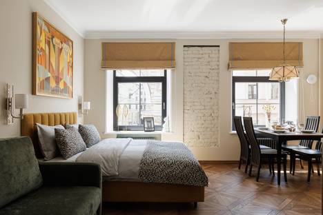Окна выходят на улицу Пестеля — прямо на дом Сюзора с той самой аркой. В квартире при этом тихо — гости пишут, что спали комфортно.