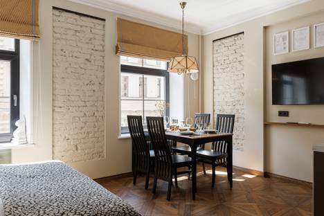 Квартира понравилась. В начале апреля в квартире тепло, регулируемые батареи и тёплые полы. Постельное белье отличное, не бьет электричеством, как часто бывает на съёмных квартирах, также приличные матрасы на кроватях, удобные подушки. На кухне много посуды на все случаи жизни. Наличие двух санузлов решало много проблем.Контактный хозяин, по договоренности, выселение было попозже, дал две комплекта ключей, не беспокоил. В квартире тихо, нет шума ни со двора, ни от соседей. Очень понравились ванные комнаты с отличным напором и температурой воды, что для Питера редкость. Понравилось, что для прохода в подъезд надо было пройти через закрывающиеся на ключ ворота. Удобное расположение квартиры на местности, до Невского проспекта пару минут идти , рядом различные кафешки на любой вкус и кошелёк. Из минусов : вид из окна во двор колодец, но приехали не в квартире сидеть, а гулять по городу, поэтому этот момент не был столь важен. Итог: цена- качество соответствует, в следующий раз будем останавливаться.