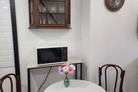 Уютная гостиная с кухней — внизу, спальня и лаунж-зона — наверху. Своего рода маленький особняк в исторической части столицы: приватно и уютно.
