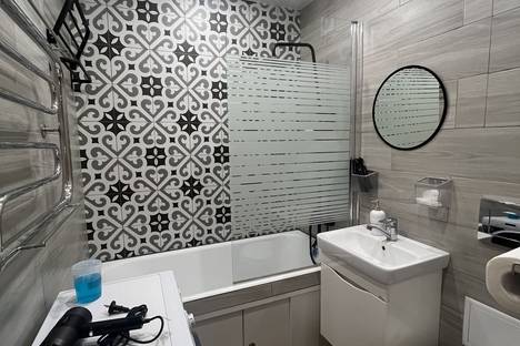 В квартире аккуратный современный санузел с ванной и стеклянной перегородкой. Для удобства гостей есть:
