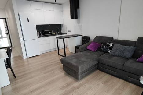 Площадь апартаментов 35кв.м. Располагаются на 17 этаже. Удачная планировка, позволяющая удобно всем разместиться. Современная кухня, гостинная зона в которой расположен двуспальный раскладной диван. Дизайнерский ремонт с использованием качественных материалов, сделан был для себя с душой!