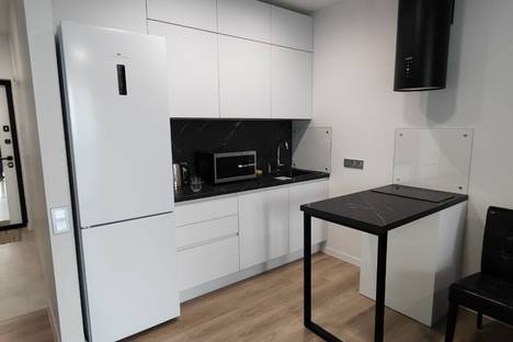 Мы предоставляем всю необходимую мебель и технику. Встроенная кухня со всей нужной гарнитурой (электрическая плита светлокерамика, электрочайник, СВЧ-печь, холодильник, посудомойка), а также вся посуда (стаканы, винные бокалы, чашки, рюмки, столовые приборы, суповые, столовые и десертные тарелки, сковороды, кастрюли, салатники и тд). Помимо этого, на кухне есть чай, кофе, сахар.
