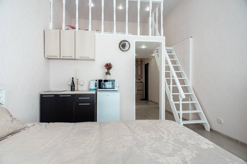 Студия небольшая, но есть всё необходимое. Горячая вода была всегда. На 2-м этаже немного душновато спать, но всё это окупается хорошим расположением квартиры. Рядом остановки общественного транспорта, метро, кафе, магазины, театр Андрея Миронова. До Петропавловской крепости и Ленинградского зоопарка ходили пешком.