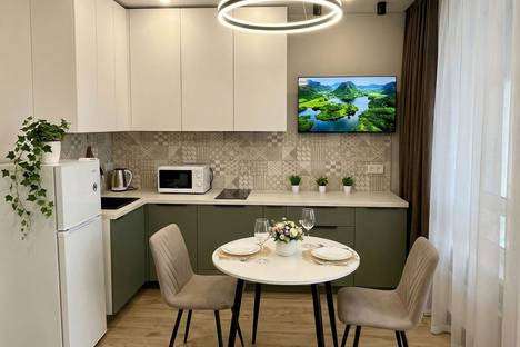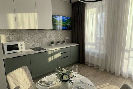 Сдаётся посуточно новая, современная студия в жилом комплексе бизнес класса “Tau house”, вблизи самого крупного торгового центра «Планета» в Уфе.