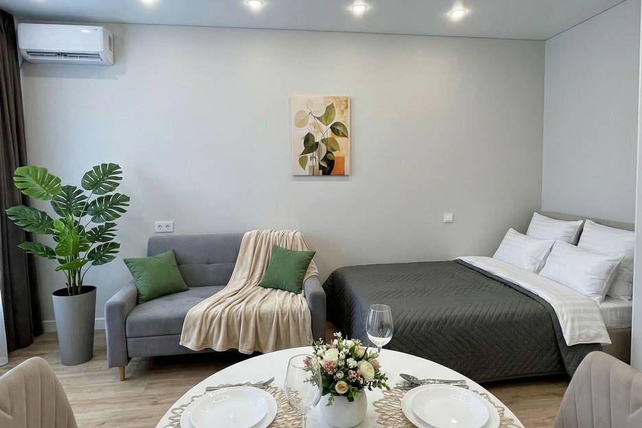 В квартире есть все для комфортного проживания: кондиционер, водонагреватель, посудомоечная машинка, микроволновая печь, стиральная машинка, утюг и гладильная доска, чайник