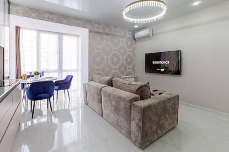 Квартира очень просторная, были вдвоём. Всё на своих местах, максимально комфортно, продумано до мелочей. Дизайн радует глаз, таких мест не видел вообще. Виз из огромного окна изумительный, особенно закаты. Соседей не слышали, вся техника работает. А телевизор это нечто, в кинотеатр можно не ходить. Спасибо творцам за данную локацию.
