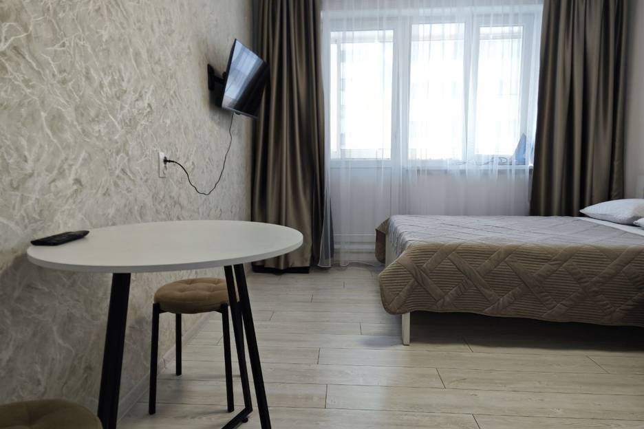 Уютная студия в новом доме для семейного отдыха и деловых поездок. Квартира оборудована всем необходимым для проживания.