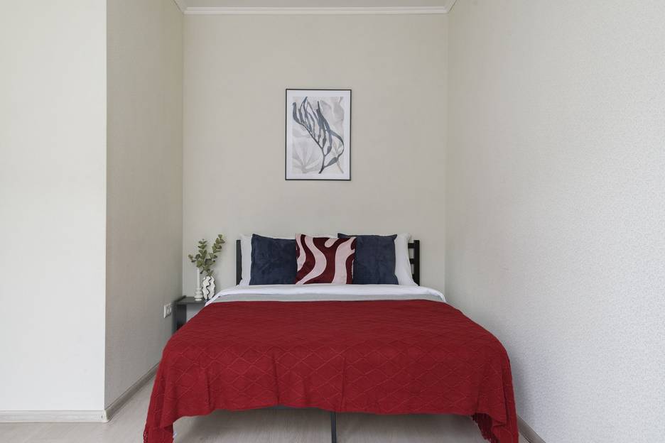 Удобную двуспальную кровать с ортопедическим матрасом и раскладной диван для двух дополнительных мест.