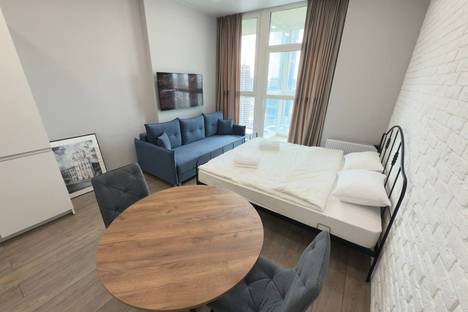 Апартаменты студия (Комфорт+) под названием «Саквояж» ждут своих гостей в г. Минске. Квартира расположена в новом доме жилого комплекса ЖК "Minsk world" на 25 этаже с панорамным видом на город.