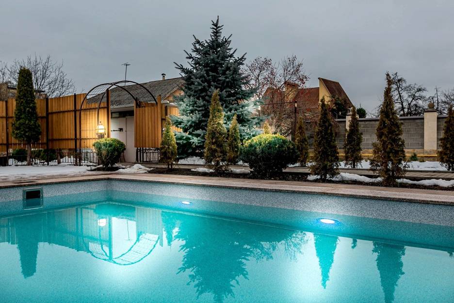 ✔бассейн, двор и сад полностью освещены, приятно гулять вечером,