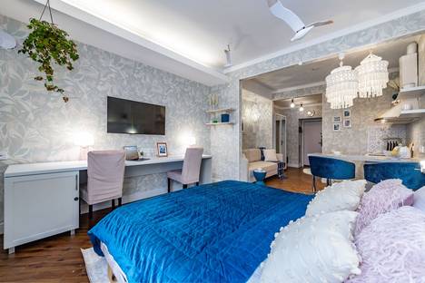 Уютная стильная студия с отличным местоположением. Из минусов — с открытым окном в октябре прохладновато, интернет периодически прерывался на пару секунд.