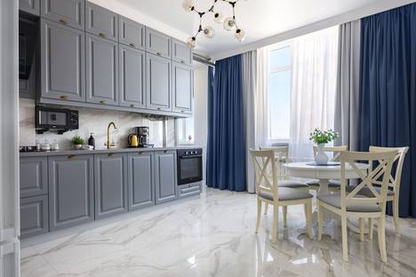 Кухня оснащена: кофемашина, электрический чайник, газовая плита, духовой шкаф, посудомоечная машина, холодильник, микроволновая печь.