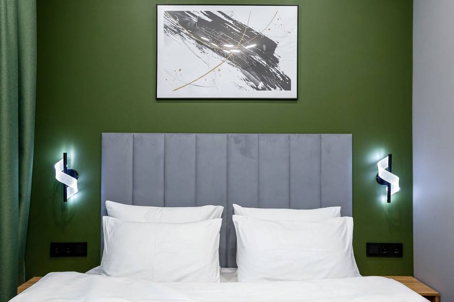 Высокие окна обеспечивают номер естественным освещением, а большая удобная кровать с качественным матрасом гарантируют вам крепкий и восстанавливающий силы сон.