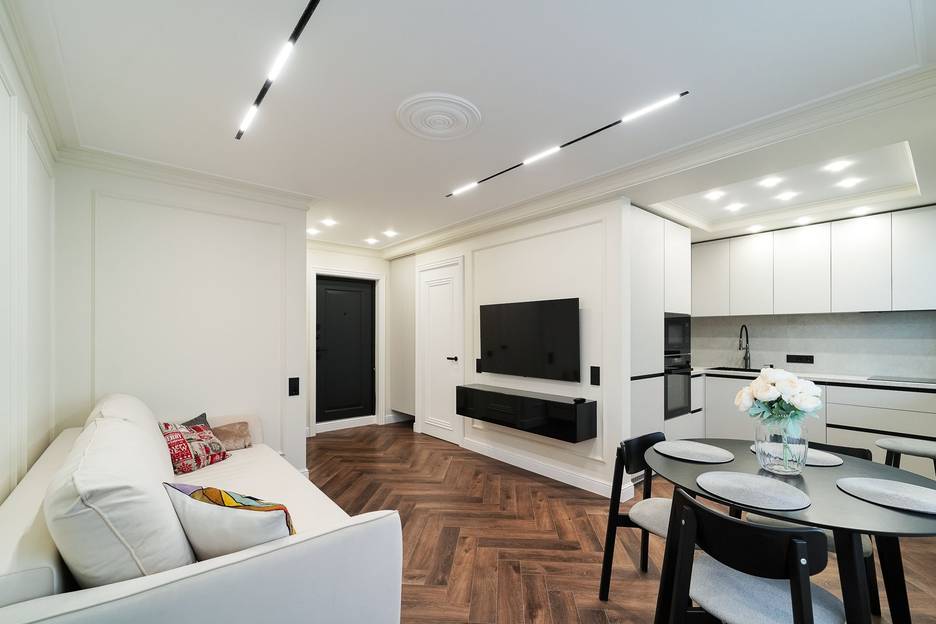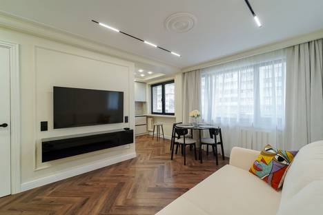 В квартире имеется всё необходимое для проживания: полностью укомплектованная кухня, обеденный стол, удобная двуспальная кровать с матрасом класса премиум, комфортный двуспальный раскладной диван, 2 телевизора, 2 гардеробных (что важно при путешествии), стиральная и сушильные машины для быстрого придания свежести вашим вещам.